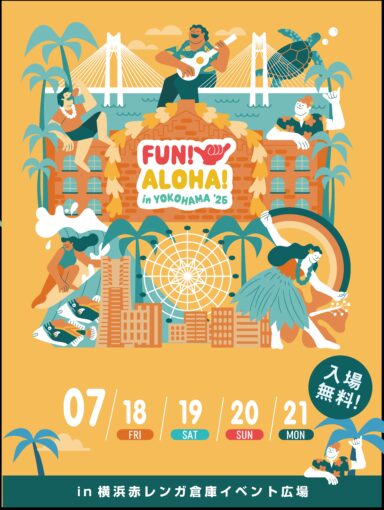 7/18(金)〜21(月・祝)に横浜赤レンガ倉庫イベント広場 で開催される『FUN! ALOHA! in YOKOHAMA ’25』に出演します。