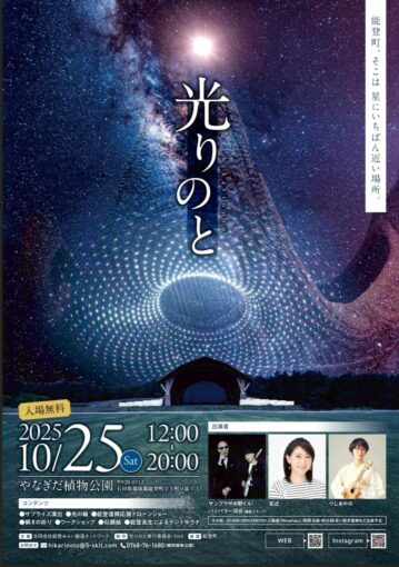 に石川県能登町 やなぎだ植物公園で開催される『光りのと』に出演します。